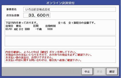 2.表示される内容を確認して、確認ボタンを押し現金でお支払いください。
